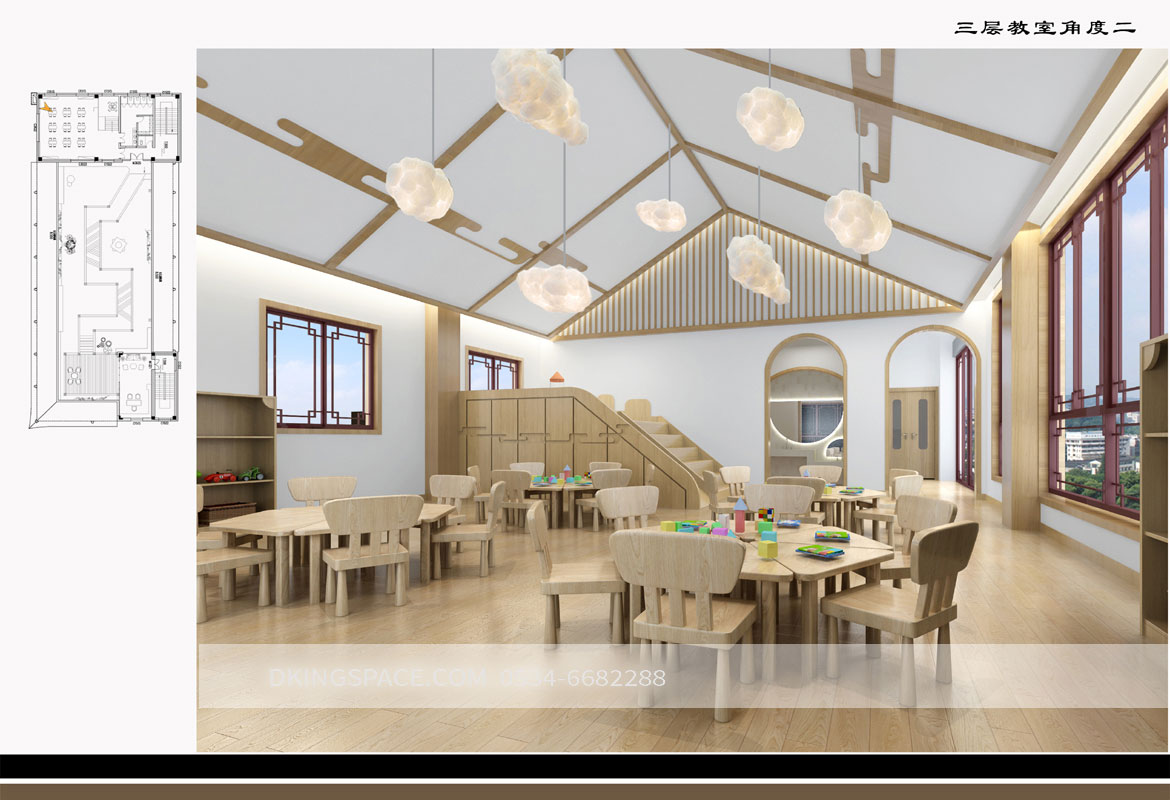 设计师采用了「Dual Perspective双重视角」,即成人和小孩的视野,去规划不同的功能空间,让成人亦可投入这个专属小朋友的国度,真正地塑造出有助发掘他们学习潜能的空间。设计师刻意摒弃由成人想象儿童的心态,反而是透过双方作为出发点,来塑造出一个发掘孩童潜能的空间。而家长也是这个「过程」的重要成员,在这个过程之中,让成人也重新学习小孩看世界的角度,同时促住家长、导师和小朋友之间的对话、互动与共享的空间。